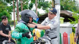 Aksi Simpatik di Mamuju: Jasa Raharja dan Dirlantas Polda Sulbar Turun Jalan Pasangkan Helm Pengendara