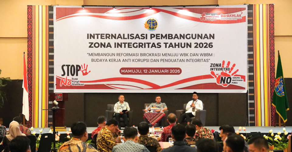 MAMUJU, BKM – Kantor Wilayah Badan Pertanahan Nasional (Kanwil BPN) Provinsi Sulawesi Barat menunjukkan komitmen kuat dalam menciptakan lingkungan kerja yang bersih dan melayani. Hal ini ditegaskan melalui agenda Internalisasi Pembangunan Zona Integritas Tahun 2026 yang digelar di Ballroom Grand Maleo Hotel & Convention Mamuju, Senin (12/1/2026).