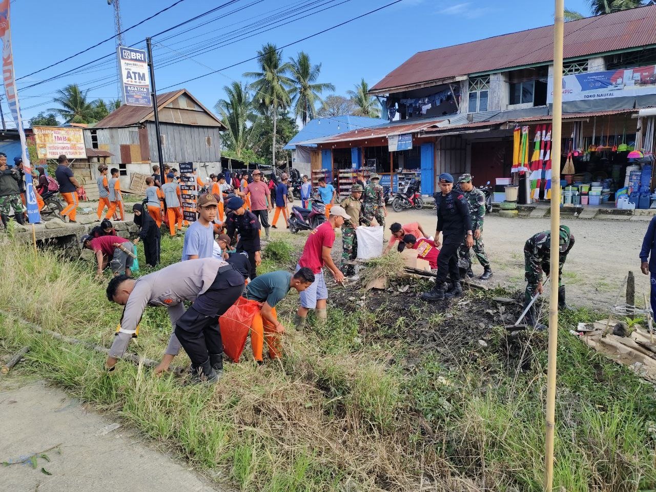 MAMUJU TENGAH, BKM – Dalam rangka menyambut HUT ke-80 Republik Indonesia sekaligus mendukung pelaksanaan TMMD ke-125, personel Kodim 1418/Mamuju bersama instansi terkait se-Kecamatan Tobadak melaksanakan karya bakti membersihkan Pasar Tobadak, Jumat (15/8/2025).